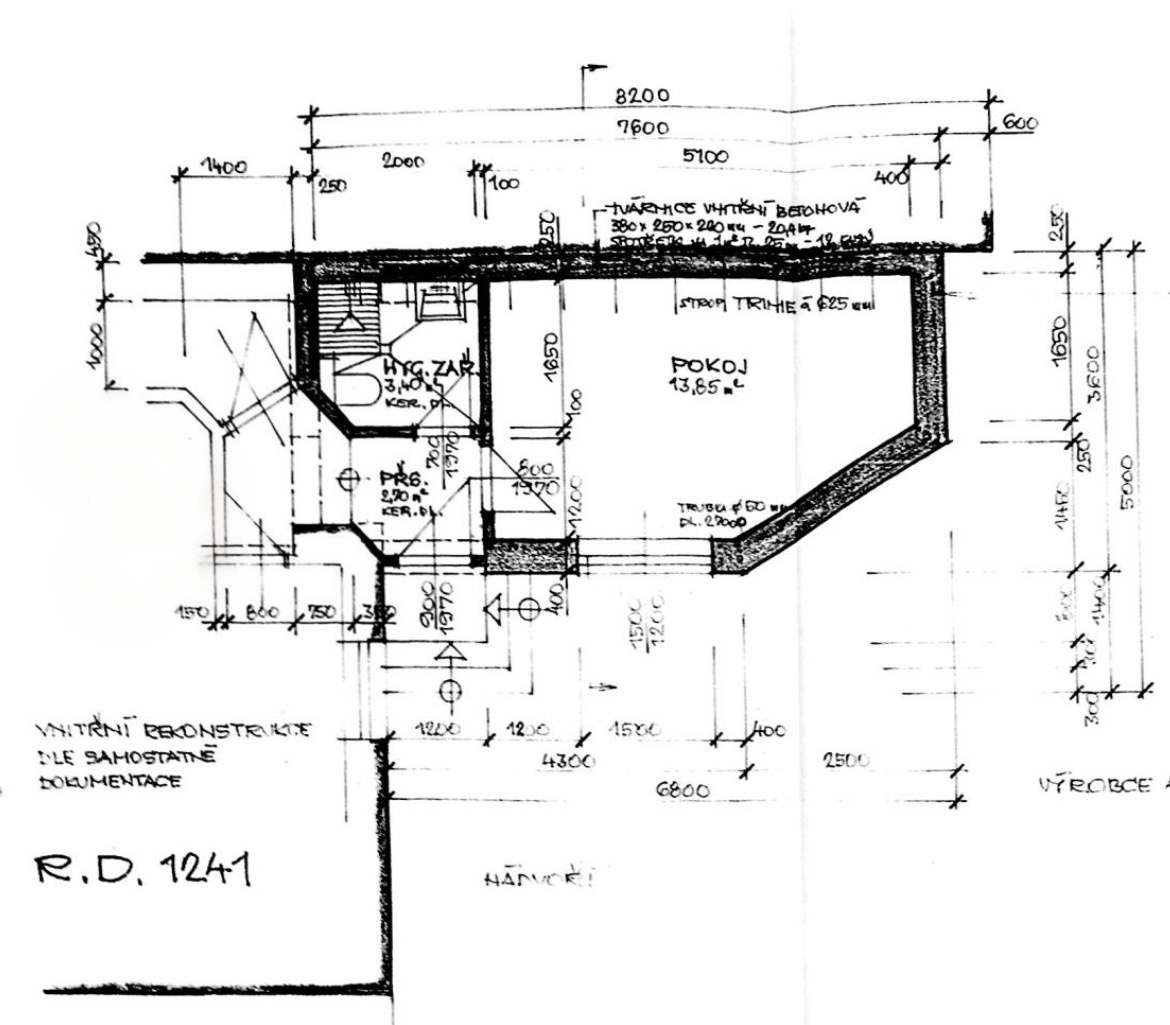 Stěny obytných místností: perlinka, štuk, bílá malba